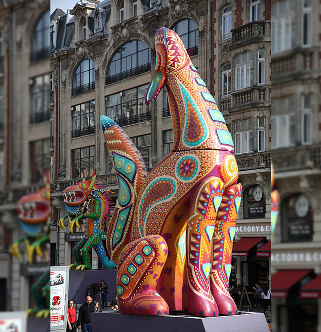 Sin duda, la exposición más visible y exitosa fue LES ALEBRIJES SUR LA RAMBLA. El Ayuntamiento de Lille encargó diez alebrijes de 7 metros de altura para su instalación a lo largo de la avenida principal de Lille (Rue Faidherbe). Los alebrijes fueron diseñados y elaborados por artistas y artesanos en México y enviados a Lille, donde permanecieron durante ocho meses, ganándose la admiración de miles de espectadores.