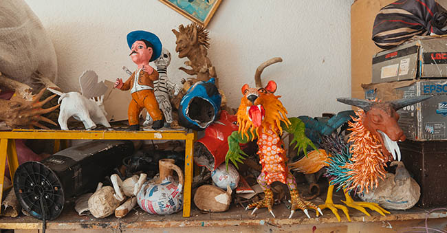 Dentro del arte popular, la cartonería tiene gran importancia por su desarrollo creativo, ya que se elaboran diversas figuras con papel y cartón, como alebrijes, Judas, calaveras y catrinas para celebraciones como el Día de Muertos.